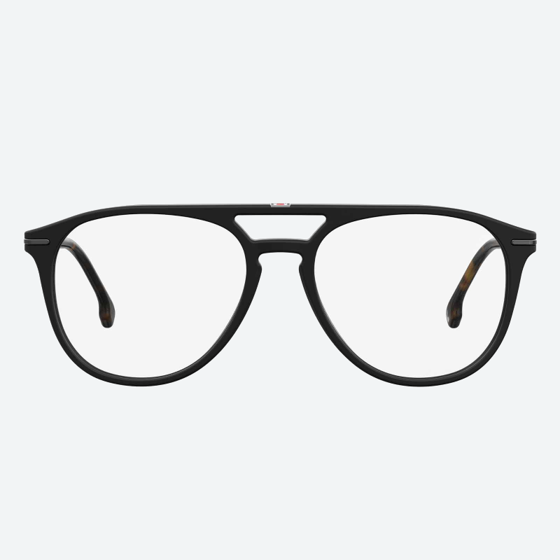 Get a bold and stylish look with Carrera matte black pilot eyeglasses. Designed for men, these acetate frames are lightweight, comfortable and perfect for everyday wear.